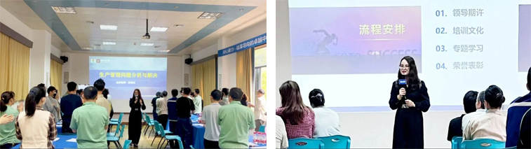 凃總在開(kāi)營(yíng)儀式上表達(dá)了公司對(duì)此次訓(xùn)練營(yíng)成果的期許,希望大家?guī)е鴨?wèn)題、帶著使命參與培訓(xùn),結(jié)合產(chǎn)品損耗、報(bào)廢率、產(chǎn)品品質(zhì)等生產(chǎn)相關(guān)數(shù)據(jù),認(rèn)真思考生產(chǎn)流程中可能存在的問(wèn)題,在訓(xùn)練營(yíng)中進(jìn)行查缺補(bǔ)漏。同時(shí),希望所有參訓(xùn)學(xué)員保持空杯心態(tài),在培訓(xùn)中持續(xù)提升技能,將課程所學(xué)知識(shí)轉(zhuǎn)化為公司經(jīng)營(yíng)結(jié)果,為公司創(chuàng)造價(jià)值的同時(shí)實(shí)現(xiàn)自我成長(zhǎng)與能力提升。