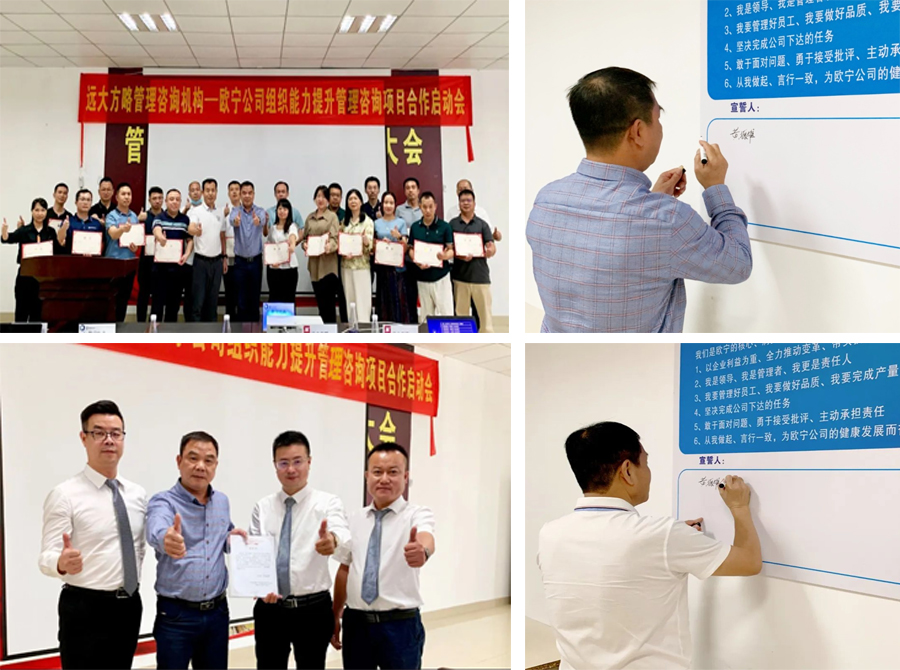 近日, 廣東順德歐寧科技電器有限公司(以下簡稱“歐寧科技”)攜手遠大方略啟動《組織能力提升》咨詢項目。優(yōu)化公司組織架構,強化組織管理,升級員工思維,加強能力建設,促進生產(chǎn)管理效率,推動企業(yè)業(yè)績持續(xù)增長。