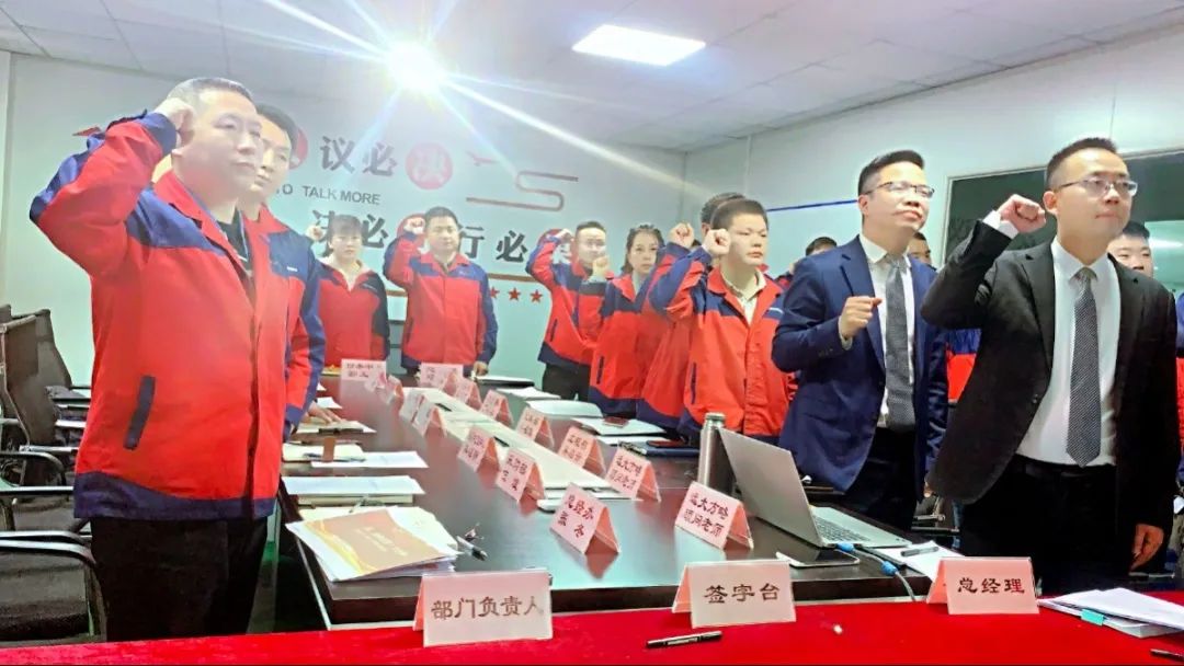 會(huì)上,各項(xiàng)目負(fù)責(zé)人簽訂了責(zé)任書,熟悉的誓言又響起,標(biāo)志著偉創(chuàng)電子的變革進(jìn)入新的階段,也表明了公司上下投身變革的堅(jiān)定決心與信心。