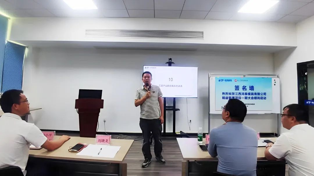 同時(shí),結(jié)合鴻泰模具發(fā)展現(xiàn)狀,老師制定了一套完善的項(xiàng)目改善計(jì)劃,會(huì)議上老師介紹了此次項(xiàng)目的改善內(nèi)容,明確精益管理的組織架構(gòu),強(qiáng)調(diào)領(lǐng)導(dǎo)組和精益管理推進(jìn)辦公室各自的職責(zé),希望大家各司其職,落實(shí)每項(xiàng)工作,持續(xù)改善打造標(biāo)桿。