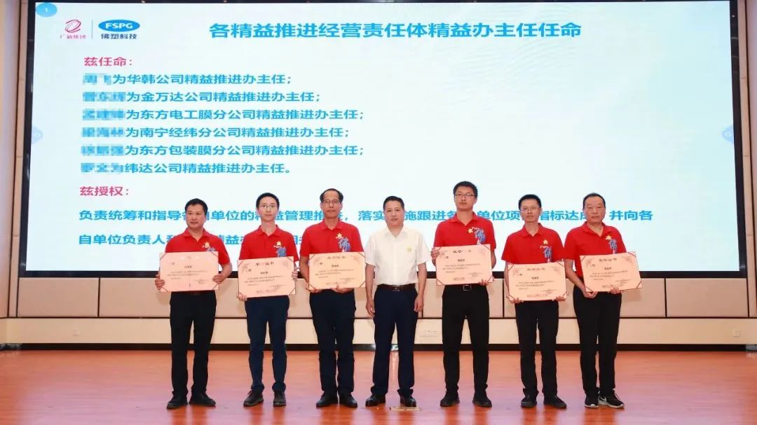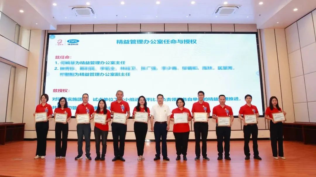 會議上,佛塑科技精益辦主任何婉慧發(fā)布精益二期項目組織架構和項目管理機制。公司黨委副書記、工會主席葉志超為項目老師和項目相關負責人頒發(fā)了授權任命書,公司黨委副書記、總裁馬平三向各重點推進單位頒發(fā)項目目標責任狀。全員參與,全力推動精益管理變革。