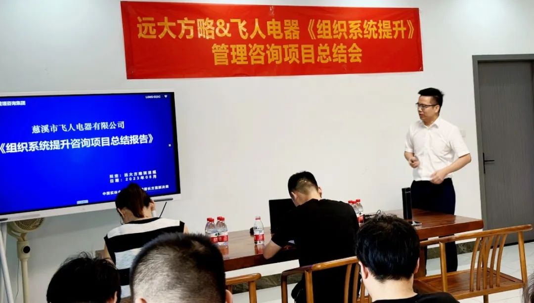 慈溪市飛人電器有限公司(以下簡(jiǎn)稱(chēng)“飛人電器”)攜手遠(yuǎn)大方略《組織系統(tǒng)提升》咨詢項(xiàng)目圓滿結(jié)束。梳理公司戰(zhàn)略目標(biāo),明確組織架構(gòu)職責(zé),增強(qiáng)各部門(mén)協(xié)同,提升運(yùn)營(yíng)管理效率,助推企業(yè)高速高質(zhì)量發(fā)展。