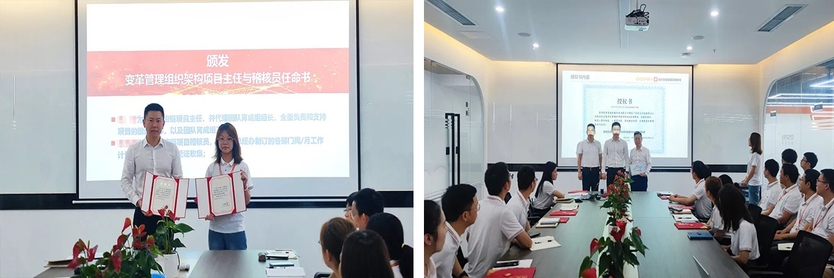 隨后,石總為遠(yuǎn)大方略項(xiàng)目組頒發(fā)授權(quán)書和聘書,為項(xiàng)目主任和各實(shí)施組組長(zhǎng)頒發(fā)任命書,明確各崗位職責(zé),強(qiáng)化責(zé)任意識(shí)。