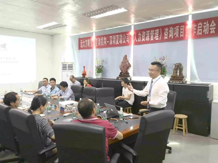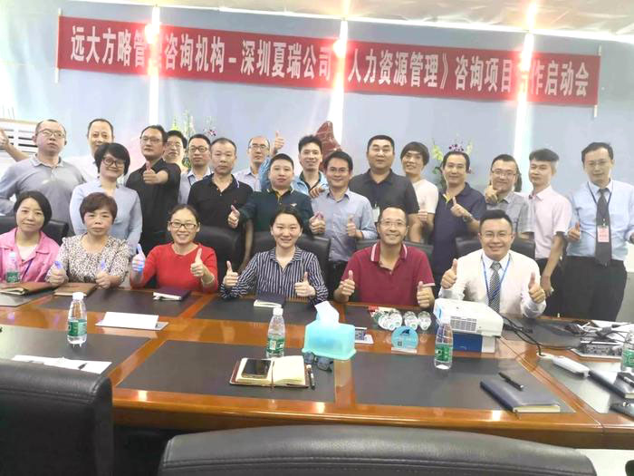 2019年11月,深圳市夏瑞科技有限公司(以下簡稱“夏瑞”)攜手遠大方略啟動《人力資源管理》改善項目。遠大方略項目總監(jiān)姚老師、項目經(jīng)理張老師、王老師入駐夏瑞,通過對夏瑞公司的深入調(diào)研與探討,本期項目主要圍繞企業(yè)經(jīng)營理念和戰(zhàn)略體系、制定三年戰(zhàn)略規(guī)劃與目標、組織結(jié)構(gòu)整合職能梳理、職業(yè)通道與職業(yè)發(fā)展設計、經(jīng)營績效與分配激勵體系設計、人力資源管理系統(tǒng)和能力提升等展開改善。