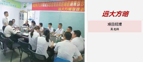 遠(yuǎn)大方略精益顧問魏老師表示,項(xiàng)目組一方面要搭建平臺建立系統(tǒng),一方面打造團(tuán)隊(duì)培訓(xùn)技能。成立信息流組打通部門內(nèi)部的信息孤島,建立機(jī)制疏通部門之間的信息壁壘;成立效率組,力助工藝合理、生產(chǎn)線平衡、管理規(guī)范、人效騰飛;成立運(yùn)營組,先算后做、控制成本、降低費(fèi)用、提升盈利質(zhì)量。高昱先借助我們老師的外力,提升三個小組的專業(yè)水平轉(zhuǎn)化為內(nèi)力,然后打造公司的整個精益生產(chǎn)系統(tǒng),達(dá)成集成運(yùn)營的各項(xiàng)指標(biāo)。