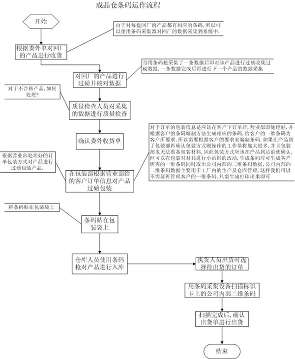 1) 當(dāng)委外收貨的半成品送至包裝部后,包裝部根據(jù)營業(yè)部的出貨計(jì)劃,按訂單包裝方式(內(nèi)包裝含商品數(shù))對產(chǎn)品進(jìn)行過磅包裝。