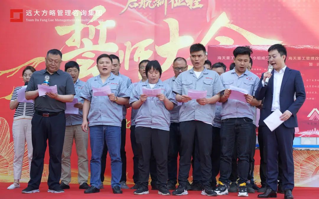 任正非說,產(chǎn)品發(fā)展的路標(biāo)是客戶需求導(dǎo)向,企業(yè)管理的目標(biāo)是流程型組織建設(shè)。此次變革就是增強(qiáng)組織能力,提高企業(yè)的管理水平和競爭力,支撐公司戰(zhàn)略目標(biāo)的實(shí)現(xiàn)。針對(duì)變革,老師有方法和工具,但是需要大家一起攜手將方案有效落地,推動(dòng)此次變革的順利進(jìn)行。會(huì)上遠(yuǎn)大方略項(xiàng)目組老師也上臺(tái)進(jìn)行了宣誓,必將全力以赴做好此次海天重工的項(xiàng)目改善,助力企業(yè)更成功。