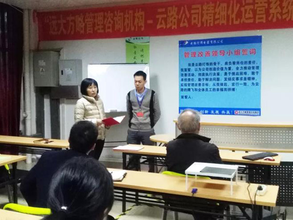 2018年1月9日,云路燈飾電器有限公司(以下簡(jiǎn)稱(chēng)“云路燈飾”)精細(xì)化運(yùn)營(yíng)管理咨詢(xún)項(xiàng)目全面啟動(dòng),攜手遠(yuǎn)大方略管理咨詢(xún)公司書(shū)寫(xiě)企業(yè)經(jīng)營(yíng)管理的新征程。遠(yuǎn)大方略咨詢(xún)師鄧發(fā)軍、寧岳華、宋世倦老師進(jìn)駐企業(yè)開(kāi)展項(xiàng)目輔導(dǎo),云路燈飾核心管理骨干學(xué)員全程參與,研修企業(yè)精細(xì)化管理的智慧。