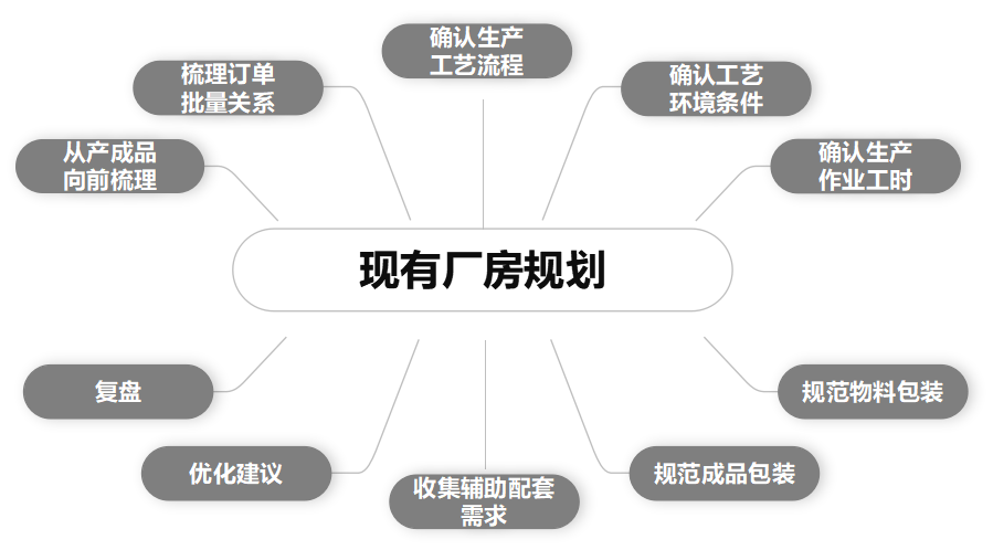 總體規(guī)劃產(chǎn)能-工廠規(guī)劃總綱,做什么產(chǎn)品,做多大量,決定著規(guī)劃規(guī)模,是我們?cè)诠S規(guī)劃項(xiàng)目考慮因素,并充分結(jié)合如下步驟展開規(guī)劃: