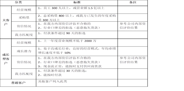 (4)建立YHD公司客戶分類分級標(biāo)準(zhǔn),具體標(biāo)準(zhǔn)如下: