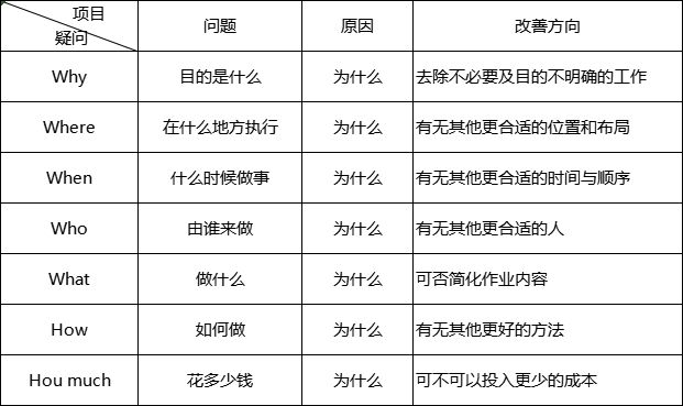 為了分析時能夠收集到更多的意見,且不會有任何的遺漏,可以設(shè)置以下提問項目逐項進行提問,并進行客觀的解答。如表所示: