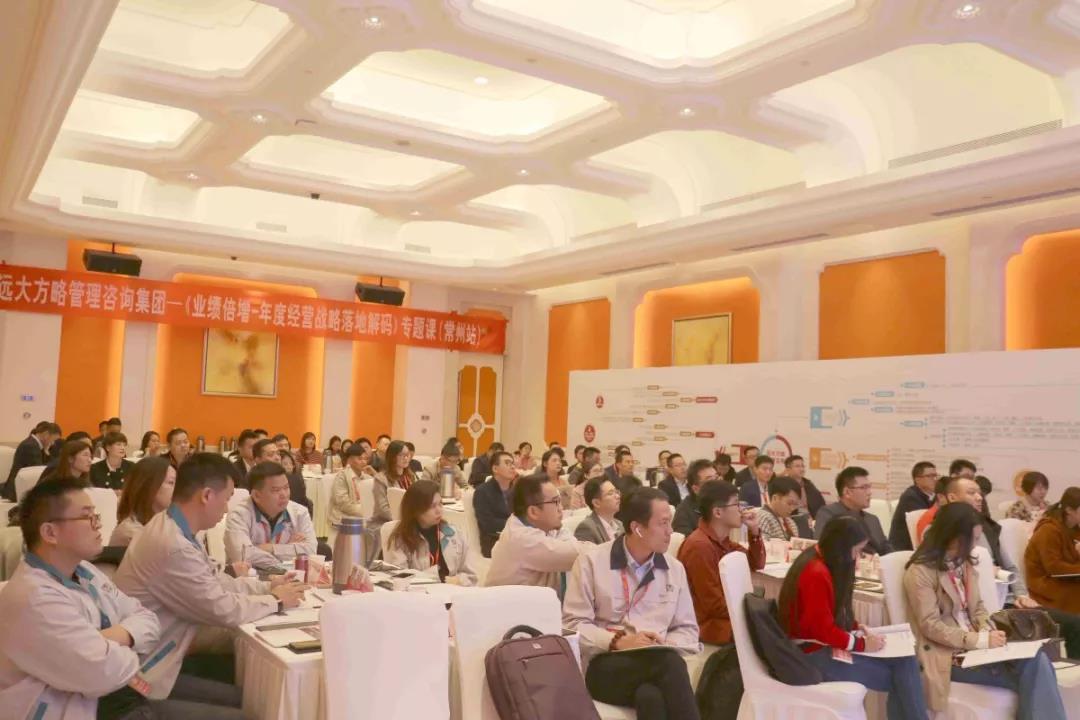 2019年11月15日—16日,遠(yuǎn)大方略《業(yè)績(jī)倍增---年度經(jīng)營(yíng)戰(zhàn)略落地解碼》全國(guó)巡講課第二站,在常州白金漢爵大酒店開(kāi)講?,F(xiàn)場(chǎng)齊聚長(zhǎng)三角100+位企業(yè)董事長(zhǎng)、總經(jīng)理、各事業(yè)部副總等參與本次課程學(xué)習(xí)探討。