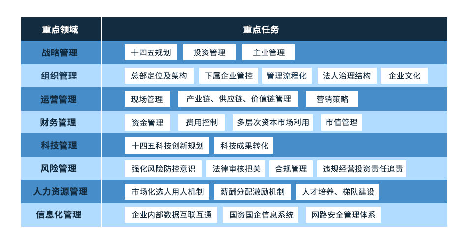 遠(yuǎn)大方略認(rèn)為,要落實(shí)好對(duì)標(biāo)世界一流,實(shí)現(xiàn)管理提升,就必須要聚焦企業(yè)自身存在的突出問題,進(jìn)一步加強(qiáng)管理體系和管理能力建設(shè), 盡快補(bǔ)齊短板和弱項(xiàng),有效增強(qiáng)競(jìng)爭(zhēng)實(shí)力,促進(jìn)國(guó)有資產(chǎn)保值增值,推動(dòng)國(guó)有資本和國(guó)有企業(yè)做強(qiáng)做優(yōu)做大。