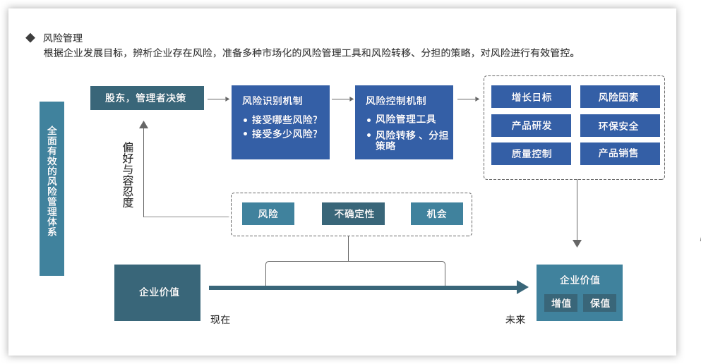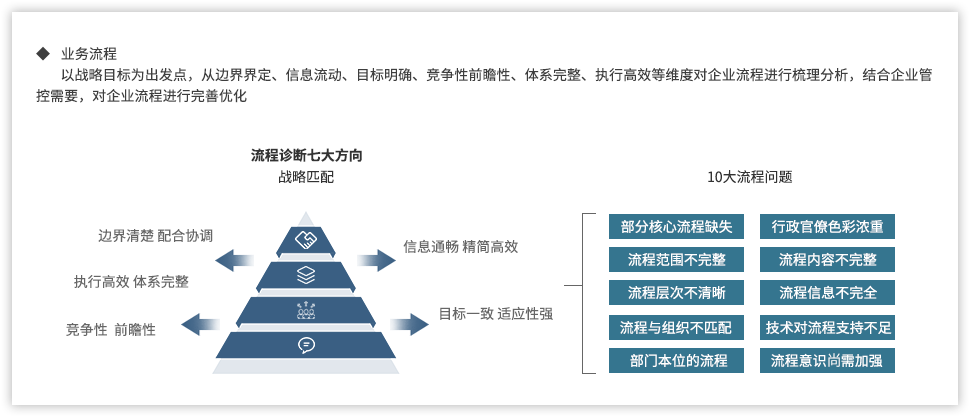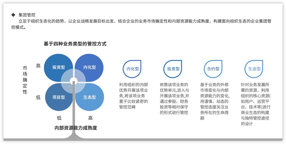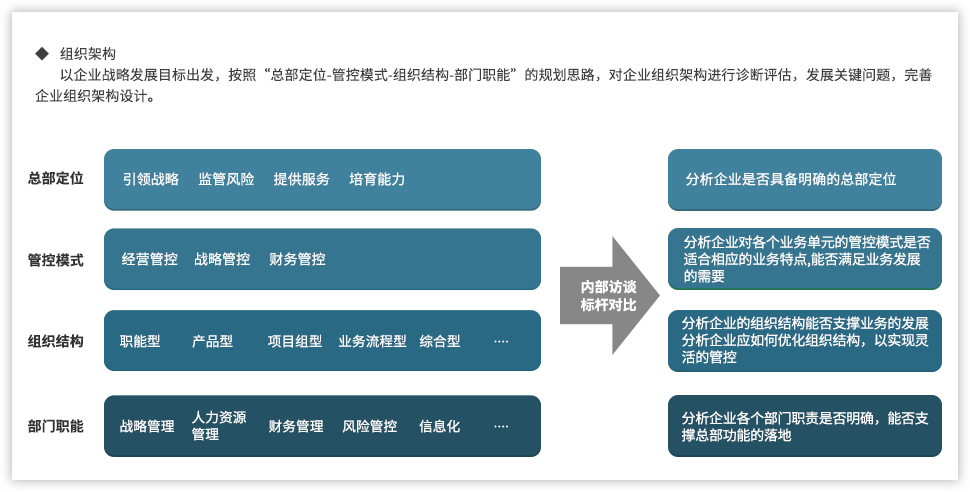 遠大方略認為,為了強化國有企業(yè)組織管控能力,企業(yè)需要以戰(zhàn)略發(fā)展目標為出發(fā)點,從組織架構(gòu)、集團管控、業(yè)務(wù)流程、風險管理、財務(wù)管控等各個方面進行全面提升,構(gòu)建系統(tǒng)全面的管控體系。