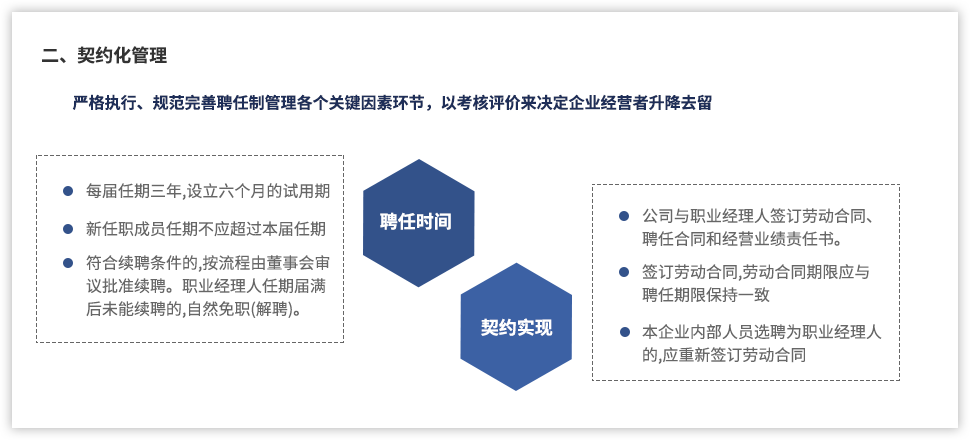 職業(yè)經(jīng)理人改革的核心目的是自上而下地為企業(yè)建立市場化的經(jīng)營機(jī)制和激勵(lì)約束機(jī)制,推動(dòng)國有企業(yè)市場主體地位的落實(shí),增強(qiáng)、釋放企業(yè)發(fā)展活力和潛力。遠(yuǎn)大方略認(rèn)為,職業(yè)經(jīng)理人改革是一個(gè)體系工程,其實(shí)施需要以公司治理結(jié)構(gòu)完善為先決條件,以人才發(fā)展體制機(jī)制改革為制度基礎(chǔ),以契約化管理和有效的考核、激勵(lì)、約束機(jī)制作為保障,涵蓋戰(zhàn)略引導(dǎo)、治理機(jī)制、崗位價(jià)值、薪酬策略、激勵(lì)前設(shè)、契約管理等多個(gè)方面。