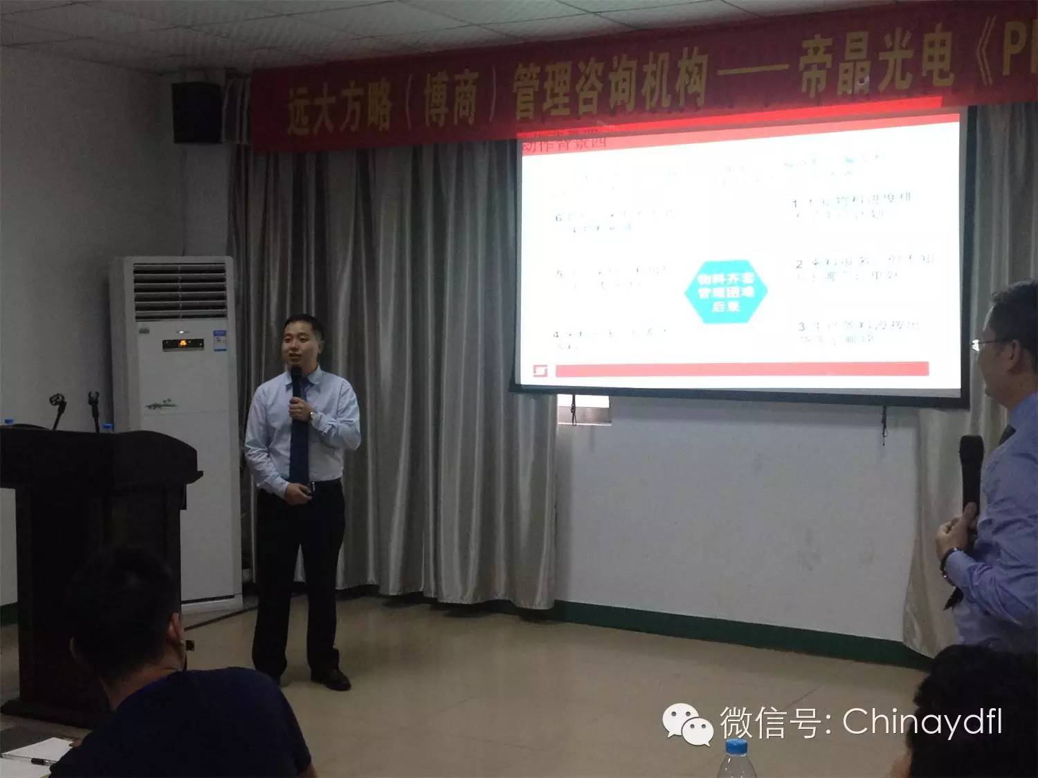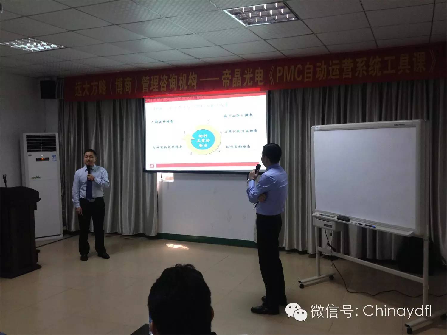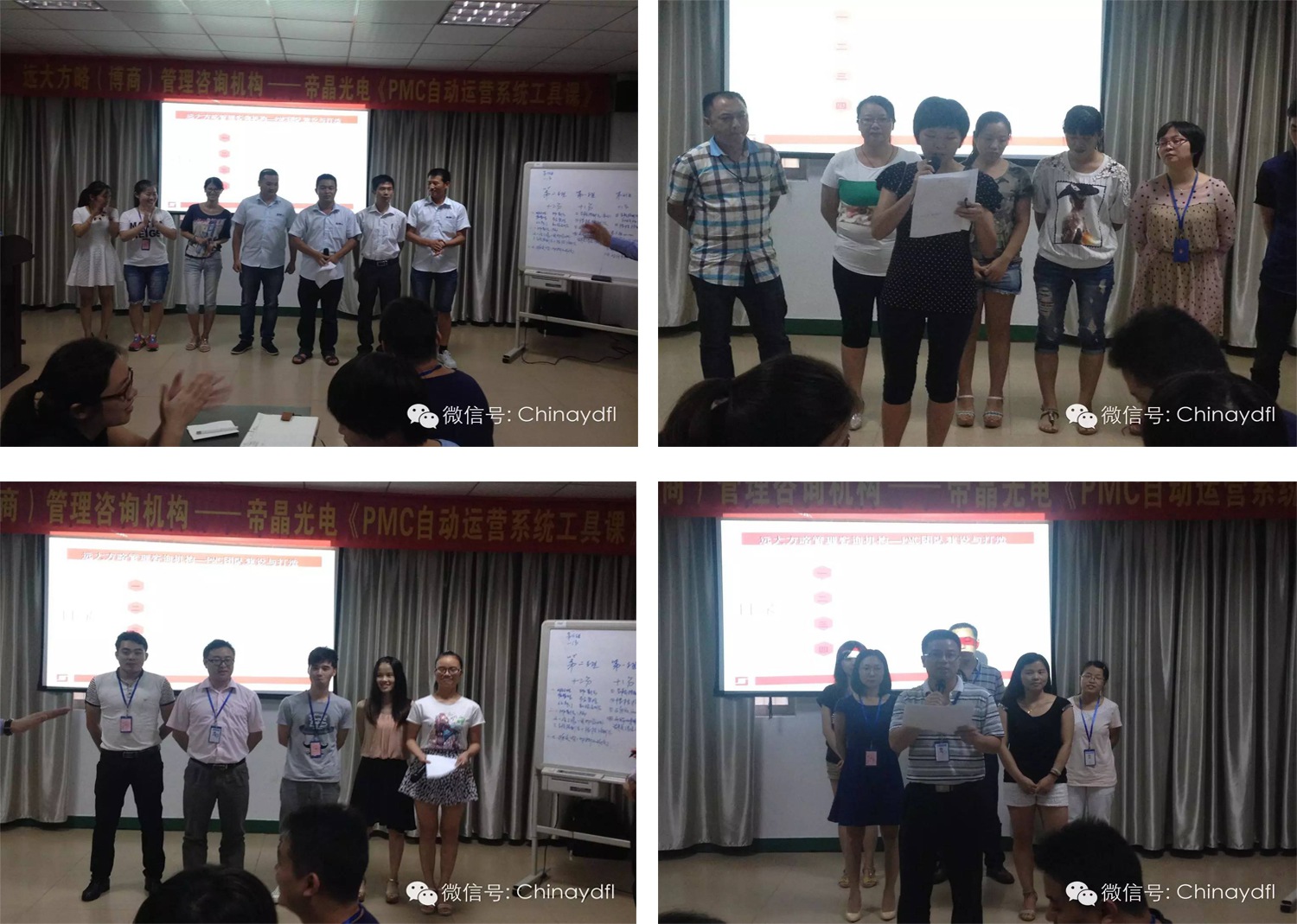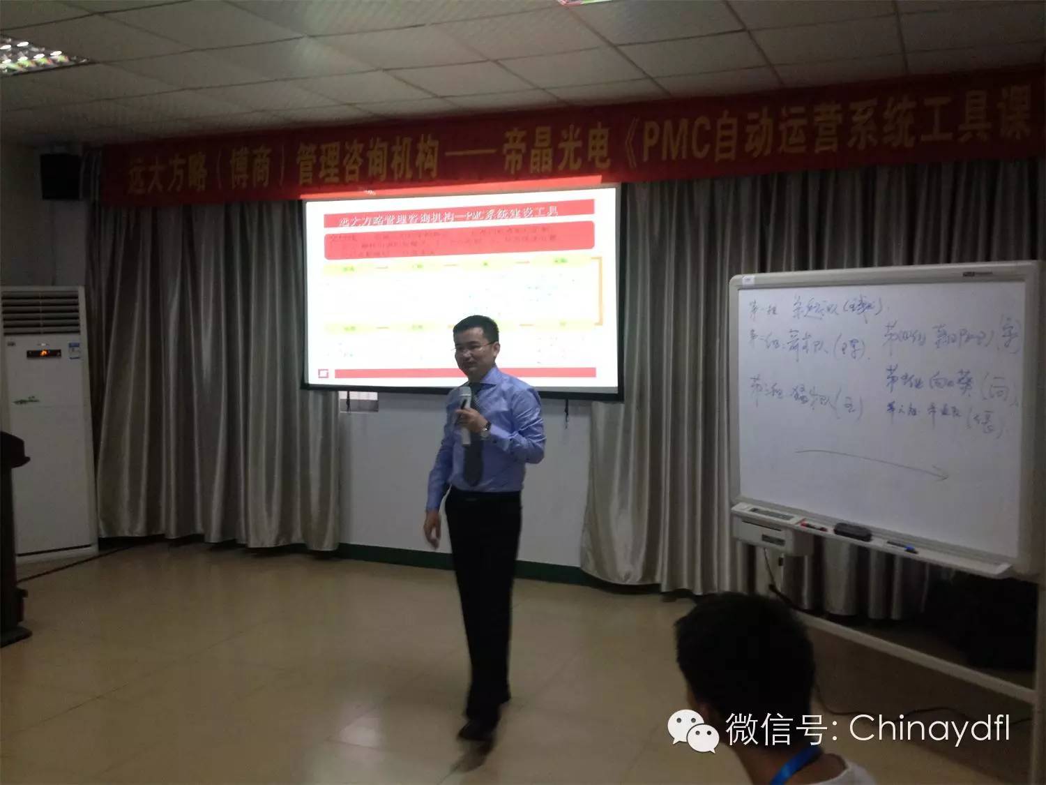 我們遠(yuǎn)大方略期望通過這一次的內(nèi)訓(xùn)課程,能夠促進(jìn)帝晶光電團(tuán)隊(duì)構(gòu)建自動(dòng)運(yùn)營的PMC管控模式,盡快地實(shí)現(xiàn)訂單管理平臺(tái)自動(dòng)化,提升大客戶的滿意度,提高資金的周轉(zhuǎn)速度,最終實(shí)現(xiàn)企業(yè)健康可持續(xù)發(fā)展、員工自動(dòng)自發(fā)做事,朝著基業(yè)長青的目標(biāo)前進(jìn)。
