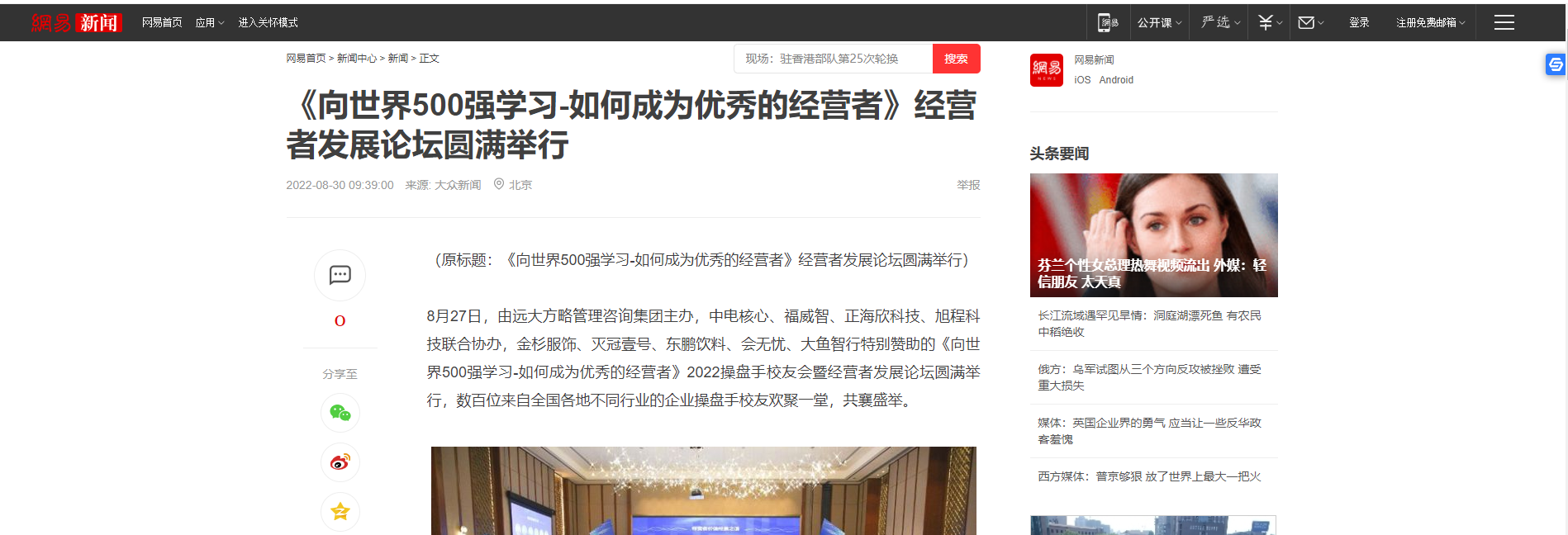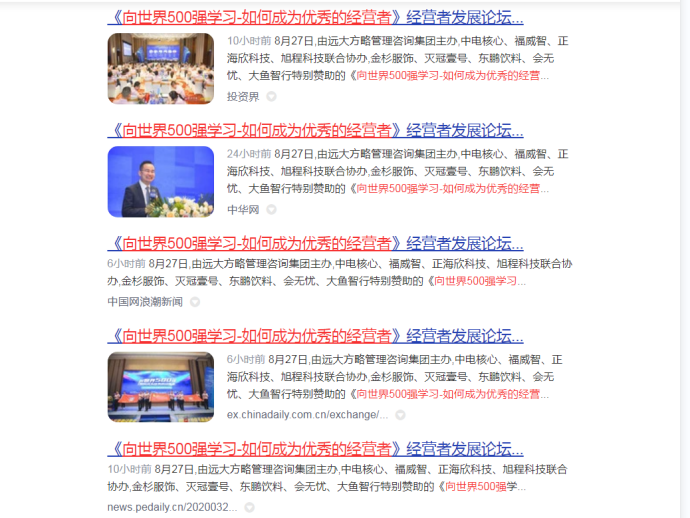 8月27日,由遠(yuǎn)大方略管理咨詢集團(tuán)主辦,中電核心、福威智、正海欣科技、旭程科技聯(lián)合協(xié)辦,金杉服飾、滅冠壹號(hào)、東鵬飲料、會(huì)無憂、大魚智行特別贊助的《向世界500強(qiáng)學(xué)習(xí)-如何成為優(yōu)秀的經(jīng)營(yíng)者》2022操盤手校友會(huì)暨經(jīng)營(yíng)者發(fā)展論壇圓滿舉行,數(shù)百位來自全國(guó)各地不同行業(yè)的企業(yè)操盤手校友歡聚一堂,共襄盛舉。