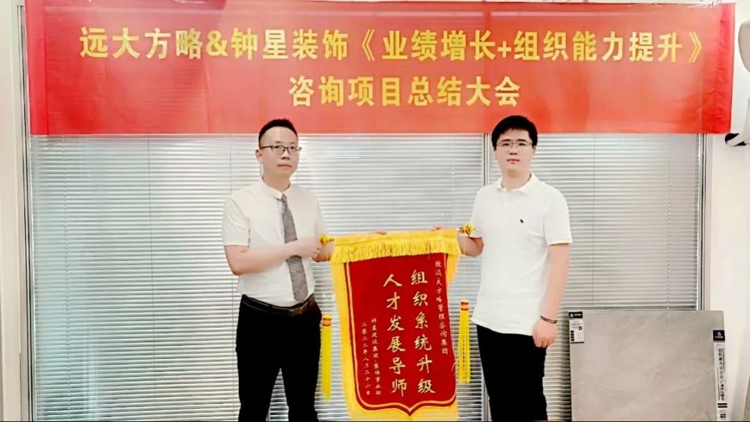 經(jīng)過半年的努力,江蘇鐘星建設(shè)集團(tuán)-裝飾事業(yè)部(以下簡稱“ 鐘星建設(shè)”)攜手遠(yuǎn)大方略《支撐業(yè)績增量的組織建設(shè)》咨詢項(xiàng)目圓滿結(jié)束,順利進(jìn)入成果驗(yàn)收階段。在公司全體員工和老師的積極配合與辛苦付出下,成功為公司打造了一個(gè)支撐業(yè)績增長的組織團(tuán)隊(duì),推動(dòng)企業(yè)持續(xù)增長。