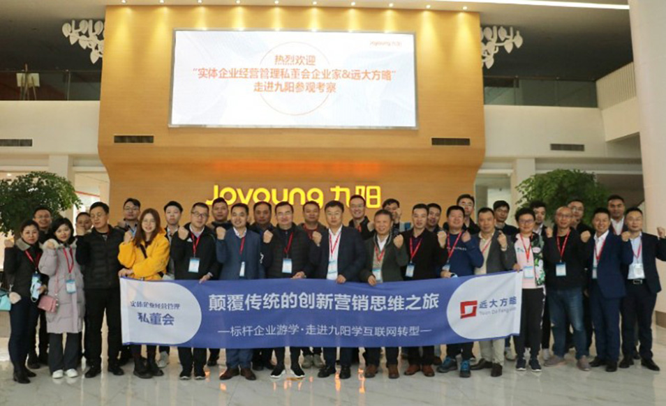 向樣板企業(yè)學(xué)習(xí),各企業(yè)家都興奮不已,11月27日在遠(yuǎn)大方略導(dǎo)師團(tuán)的陪同下,眾位企業(yè)家走進(jìn)九陽,學(xué)習(xí)九陽運(yùn)營(yíng)與創(chuàng)新模式,在新時(shí)代下如何成功轉(zhuǎn)型。九陽今天的成功除了本身的實(shí)力,其中很關(guān)鍵的一步是將企業(yè)文化真正做到了落地。此次參觀中,各優(yōu)秀企業(yè)家參觀了九陽文化展區(qū)、九陽食尚+產(chǎn)品展區(qū),了解了九陽的新產(chǎn)品和技術(shù),體驗(yàn)了勞動(dòng)的辛苦、秩序和美感,感受到了九陽文化中的生活美學(xué)。