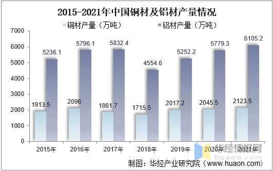 電線(xiàn)電纜主要由導(dǎo)體線(xiàn)芯、絕緣層和護(hù)層等部分構(gòu)成,其中導(dǎo)體線(xiàn)芯主要由銅材、鋁材構(gòu)成,銅、鋁原材料在電線(xiàn)電纜產(chǎn)品所需的原材料中占比最大。我國(guó)是世界上第二大產(chǎn)銅國(guó)和第一大原鋁生產(chǎn)國(guó),市場(chǎng)供應(yīng)充足。據(jù)資料顯示,2021年我國(guó)銅材產(chǎn)量為2123.5萬(wàn)噸,同比增長(zhǎng)3.8%;鋁材產(chǎn)量為6105.2萬(wàn)噸,同比增長(zhǎng)5.6%。