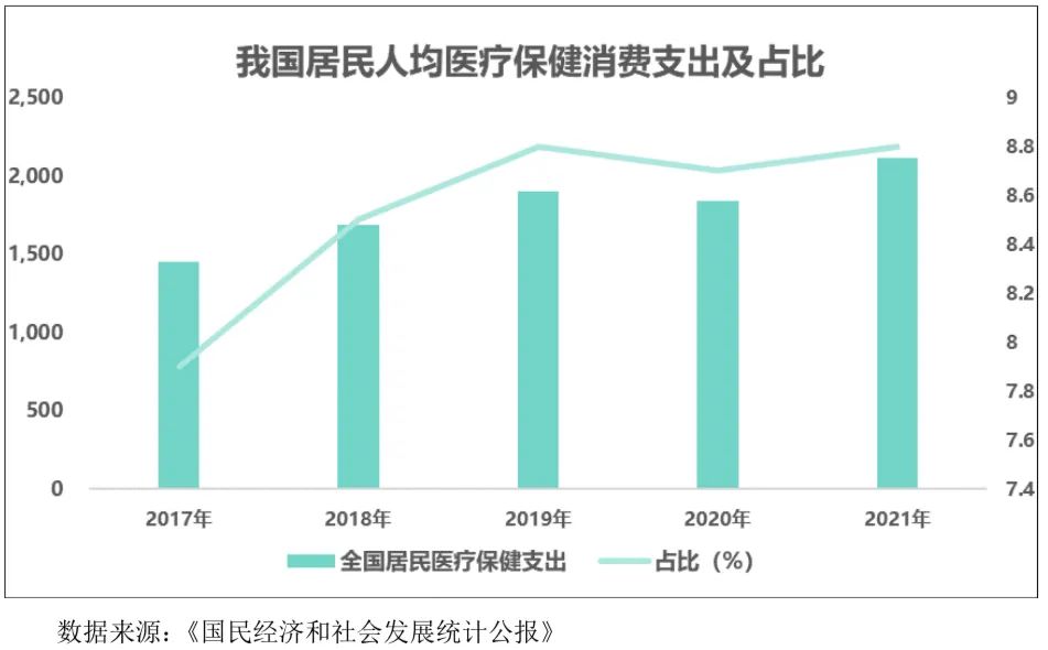 2.4.2 居民醫(yī)療保健消費(fèi)支出逐步增長(zhǎng),整體健康意識(shí)覺(jué)醒