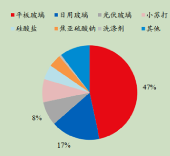 純堿行業(yè)下游消費(fèi)結(jié)構(gòu)占比: