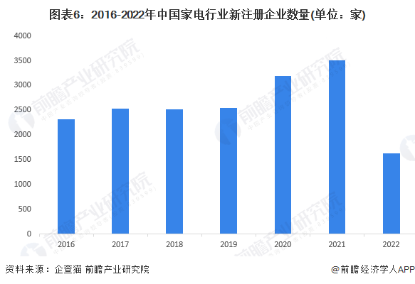 1、家電企業(yè)注冊(cè)數(shù)量:2021年達(dá)到3503家