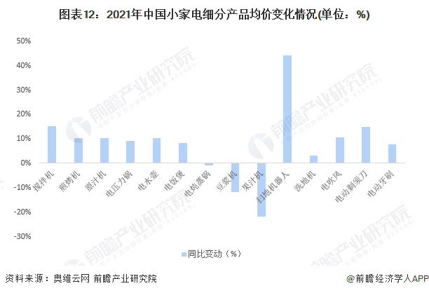 2021年,中國廚房小家電產(chǎn)品均價整體同比有所上升,但具體而言,不同細分產(chǎn)品趨勢各有差異。攪拌機、煎烤機、原汁機、電壓力鍋、電水壺、電飯煲產(chǎn)品均價同比上漲約10%左右,尤其攪拌機上漲幅度約為15%,多數(shù)產(chǎn)品漲幅較大主要系因為2021年鋁、不銹鋼、銅等大宗原材料價格大幅快速上漲,成本上升逐漸傳導至終端價格所致。部分細分產(chǎn)品如豆?jié){機、果汁機價格有所回落,主要系細分市場競爭加劇且消費者對于非必須產(chǎn)品保持理性的購買心理。