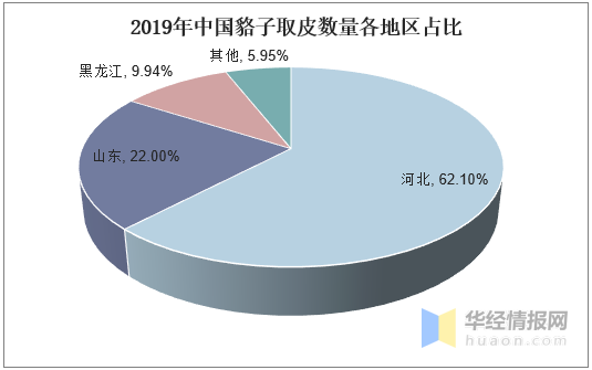 中國(guó)水貂、狐貍、貉子主要的養(yǎng)殖區(qū)位山東、遼寧、黑龍江、河北等地。根據(jù)數(shù)據(jù)顯示,山東是水貂的主要養(yǎng)殖區(qū),2019年山東水貂取皮數(shù)量占全國(guó)水貂取皮數(shù)量的56.79%;其次為遼寧和黑龍江,水貂取皮數(shù)量分別占據(jù)總?cè)∑?shù)量的26.51%、9.82%。
