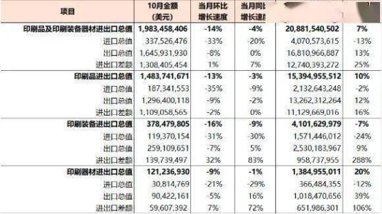 在2022年1-10月國內(nèi)印刷品、印刷裝備、印刷器材進(jìn)出口總值為208.82億美元,與去年同期相比增長7%。其中,進(jìn)口40.71億美元、出口168.11億美元。國內(nèi)印刷品、印刷裝備和印刷器材進(jìn)出口貿(mào)易順差合計127.40億美元。