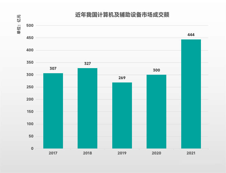 計算機(jī)作為一個大類,在我國3C市場銷售額中占比并不高,2017-2020年基本維持在300億元左右。但與市場規(guī)模巨大的家電市場不同,計算機(jī)類產(chǎn)品自身遠(yuǎn)程、無接觸的特性,使其在疫情期間逆勢增長,2019-2021年市場成交額連續(xù)上漲,從269億元增至444億元,增長率達(dá)65%以上。特別是便攜易用的筆記本電腦貢獻(xiàn)了大部分市場增量,例如我國2021年個人PC(不含平板電腦)出貨量達(dá)5710萬臺,其中筆記本電腦出貨量為3650萬臺+,占比約64%,已成為當(dāng)代國民辦公、娛樂首選設(shè)備之一。