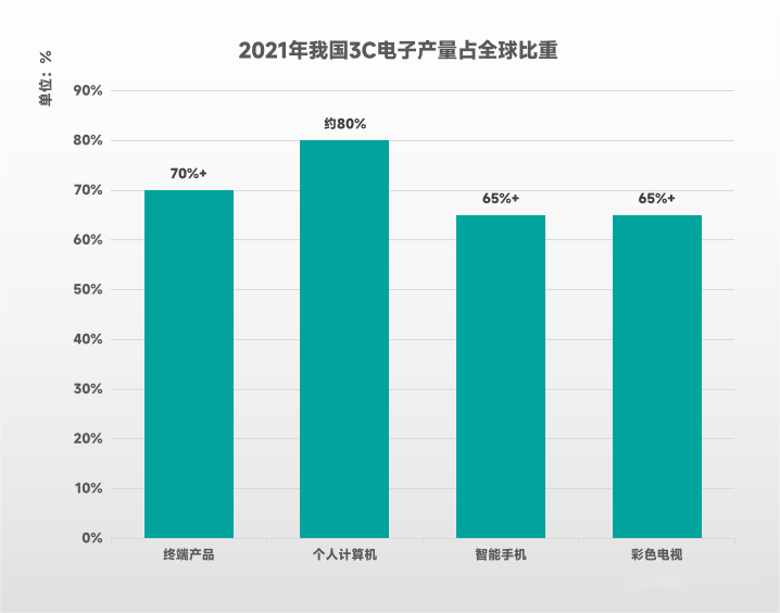 我國不僅是世界最主要的3C產(chǎn)品消費(fèi)國之一,更是尤為重要的3C產(chǎn)品制造基地。據(jù)工信部統(tǒng)計數(shù)據(jù),2021年我國3C終端產(chǎn)品的產(chǎn)量占全球比重超過70%。其中,個人計算機(jī)、智能手機(jī)、彩電等重要3C產(chǎn)品的產(chǎn)量皆處于世界首位,一些中國自主品牌更是在發(fā)達(dá)國家占據(jù)市場份額前列,在滿足國內(nèi)龐大需求的同時,也積極向海外市場輸出質(zhì)優(yōu)價廉的中國制造3C產(chǎn)品,充分展現(xiàn)了“世界工廠”無與倫比的強(qiáng)大生產(chǎn)力。在近年部分細(xì)分品類內(nèi)需不足的情況下,加強(qiáng)對外出口或?qū)⒊蔀樾袠I(yè)新的重要增長點(diǎn)。
