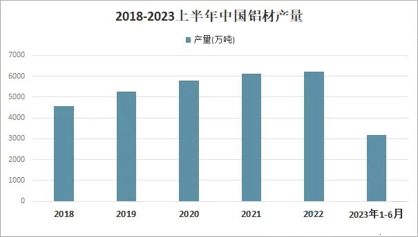 智能裝備產(chǎn)業(yè)鏈的上游為鋼材、鋁材、重要零部件等原材料。從國家統(tǒng)計局發(fā)布的數(shù)據(jù)來看,我國鋁材的產(chǎn)量逐年攀升,原材料供應(yīng)充足,2022年我國鋁材產(chǎn)量為6221.6萬噸,較上年增加116.4萬噸,同比增加1.90%。2023年上半年鋁材產(chǎn)量為3187.5萬噸,預(yù)計2023年底產(chǎn)量可突破6300萬噸。