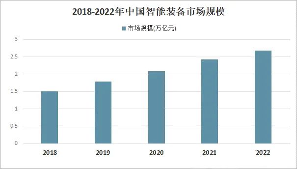 智能裝備制造業(yè)是智能裝備的中游產(chǎn)業(yè),近年來中國智能裝備市場規(guī)模增長迅速。智能裝備制造業(yè)是為工業(yè)生產(chǎn)體系和國民經(jīng)濟(jì)各行業(yè)直接提供技術(shù)設(shè)備的戰(zhàn)略性產(chǎn)業(yè)。目前已初步形成以自動化生產(chǎn)線、智能檢測與裝配裝備、智能控制系統(tǒng)、工業(yè)機(jī)器人等為代表的產(chǎn)業(yè)體系,產(chǎn)業(yè)規(guī)模日益增長。數(shù)據(jù)顯示,2018年我國智能制造裝備市場規(guī)模超過1.51萬億元,2020年市場規(guī)模突破2萬億元。2022年智能裝備市場規(guī)模繼續(xù)擴(kuò)大,截至2022年末,中國智能裝備市場規(guī)模為35.76億元,較上年同比增加8.43%。