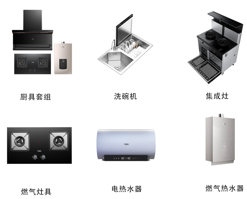 公司產(chǎn)品覆蓋熱水、廚電、凈水、采暖四大品類。包括熱水器、油煙機(jī)、燃?xì)庠?、洗碗機(jī)、集成灶、凈水器、壁掛爐等。