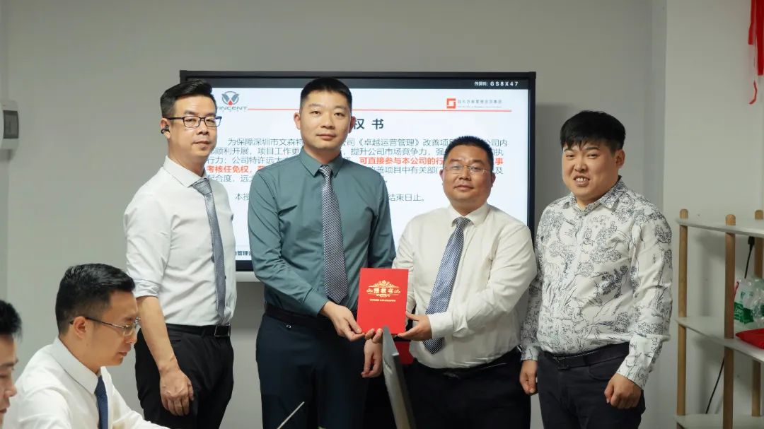 會(huì)上,吳總為項(xiàng)目老師頒發(fā)授權(quán)書,授予項(xiàng)目老師項(xiàng)目管理權(quán)利,同時(shí)為公司項(xiàng)目團(tuán)隊(duì)成員頒發(fā)任命書,明確職責(zé),強(qiáng)化責(zé)任,確保項(xiàng)目的有效落地。