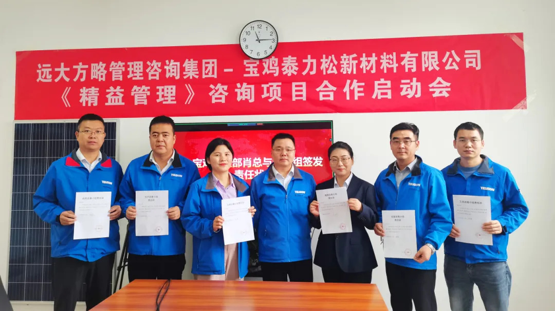 持續(xù)改善,邁向卓越。近日,泰力松再次攜手遠大方略開啟管理變革,暨西安泰力松、金壇分公司相繼與遠大方略展開《運營管控與組織能力提升》、《精益管理》咨詢項目合作后,此次寶雞泰力松新材料有限公司(以下簡稱“寶雞泰力松”)攜手遠大方略開啟第三期《精益管理》咨詢項目,幫助企業(yè)建立全員精益思維,搭建科學合理的精益管理體系,內部運營實現標準化、規(guī)范化、流程化以及制度化,提升整體運營效率,推動企業(yè)向高質量發(fā)展道路邁進。