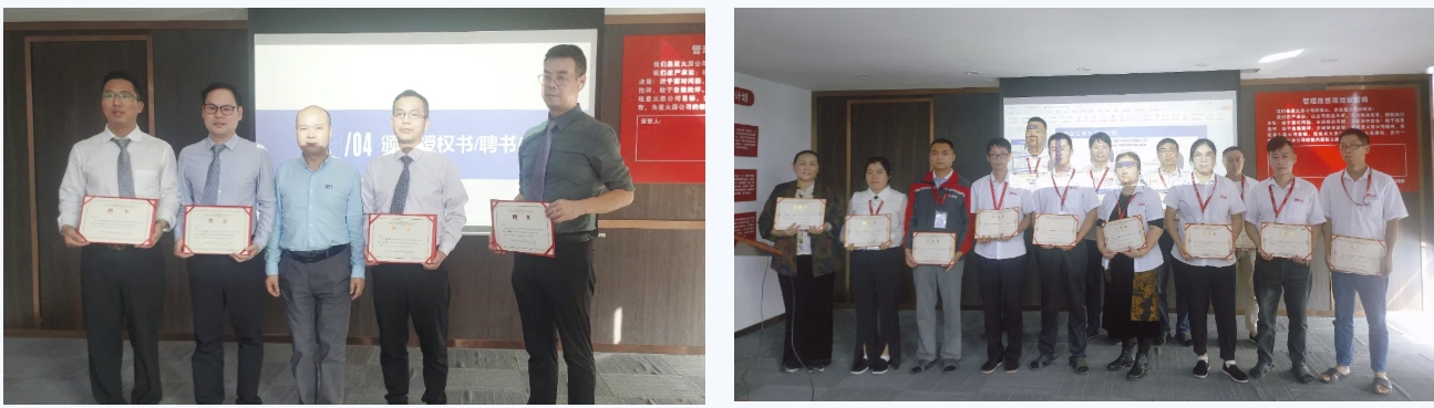 會上,郭總還為項目組頒發(fā)聘書和授權書,同時為項目改善小組頒發(fā)任命書,明確目標,落實責任。最后,參會全體人員進行宣誓,堅定變革決心,全力推動改善,助力企業(yè)高質量發(fā)展。
