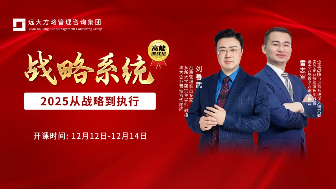 為幫助企業(yè)掃清戰(zhàn)略迷霧,遠(yuǎn)大方略每年都會(huì)推出戰(zhàn)略系統(tǒng)課程,10月戰(zhàn)略課程現(xiàn)場(chǎng)爆滿,11月21日-23日再次舉行《戰(zhàn)略系統(tǒng)-2025從戰(zhàn)略到執(zhí)行》課程,現(xiàn)場(chǎng)依舊火熱。本次課程由華為企業(yè)管理咨詢顧問(wèn)劉善武老師全程授課,通過(guò)深入剖析戰(zhàn)略的本質(zhì)與執(zhí)行的精髓,為學(xué)員們提供一套從戰(zhàn)略制定到高效執(zhí)行的系統(tǒng)性方法論,幫助企業(yè)實(shí)現(xiàn)戰(zhàn)略性增長(zhǎng)。