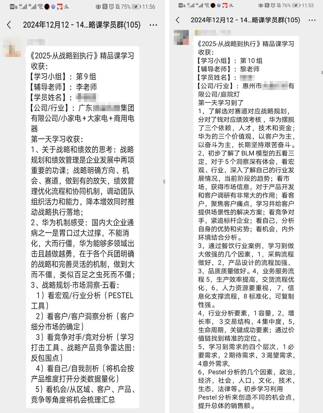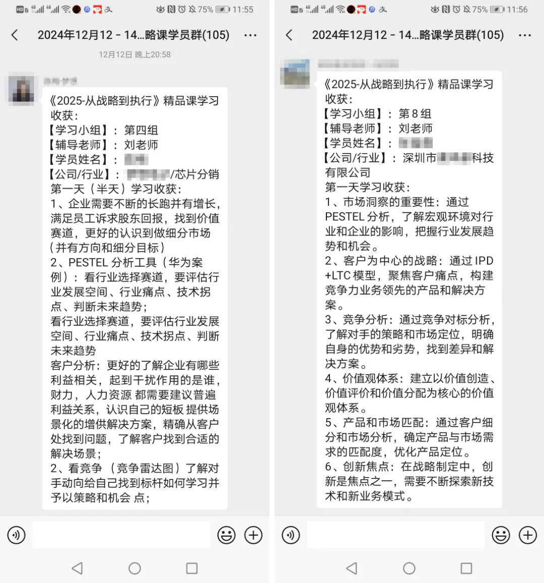 組團來學習的企業(yè),在結束一天的課程之后,企業(yè)老板都帶著核心團隊繼續(xù)實戰(zhàn)演練,深度研討,深化企業(yè)戰(zhàn)略方案,同時可以讓企業(yè)老板和高管實現(xiàn)上下同頻,達成戰(zhàn)略共識,從而促進戰(zhàn)略規(guī)劃有效落地。
