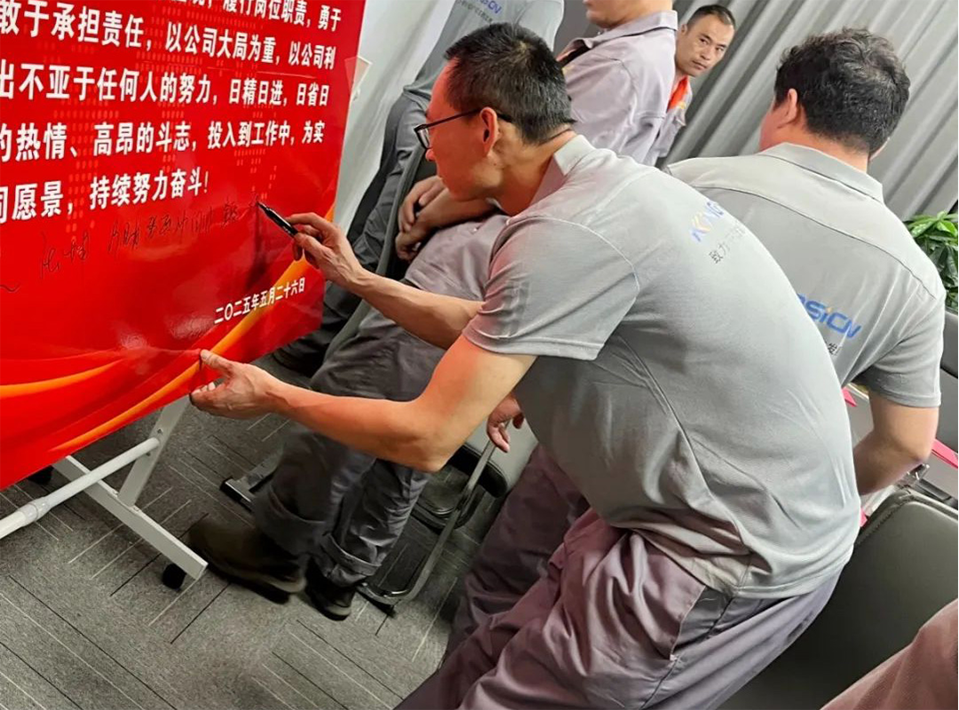 會上,于總為項目老師頒發(fā)了聘書,給項目關(guān)鍵人員頒發(fā)了任命書,帶領(lǐng)大家在誓言上簽下名字并集體宣誓。鼓勵大家積極投身變革提升能力,為公司持續(xù)發(fā)展增添助力。