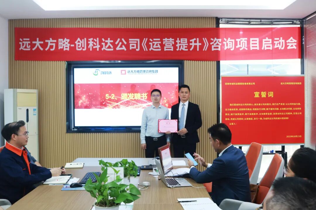 近日,深圳市創(chuàng)科達(dá)精密機(jī)電有限公司(以下簡(jiǎn)稱“創(chuàng)科達(dá)”)攜手遠(yuǎn)大方略啟動(dòng)《卓越運(yùn)營(yíng)》咨詢項(xiàng)目,進(jìn)行科學(xué)、系統(tǒng)的管理升級(jí),優(yōu)化供應(yīng)鏈管理,減少庫存積壓,提升資金周轉(zhuǎn)率;現(xiàn)場(chǎng) 5S 管理營(yíng)造干凈整潔的環(huán)境,提高效率與質(zhì)量,降低事故率;完善組織架構(gòu),提升團(tuán)隊(duì)管理效率,合理配置資源,提高決策準(zhǔn)確性。全方位提升運(yùn)營(yíng)管理水平,為企業(yè)高質(zhì)量發(fā)展注入強(qiáng)勁動(dòng)力。