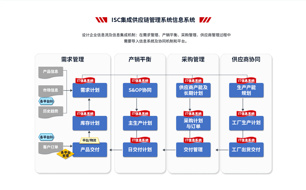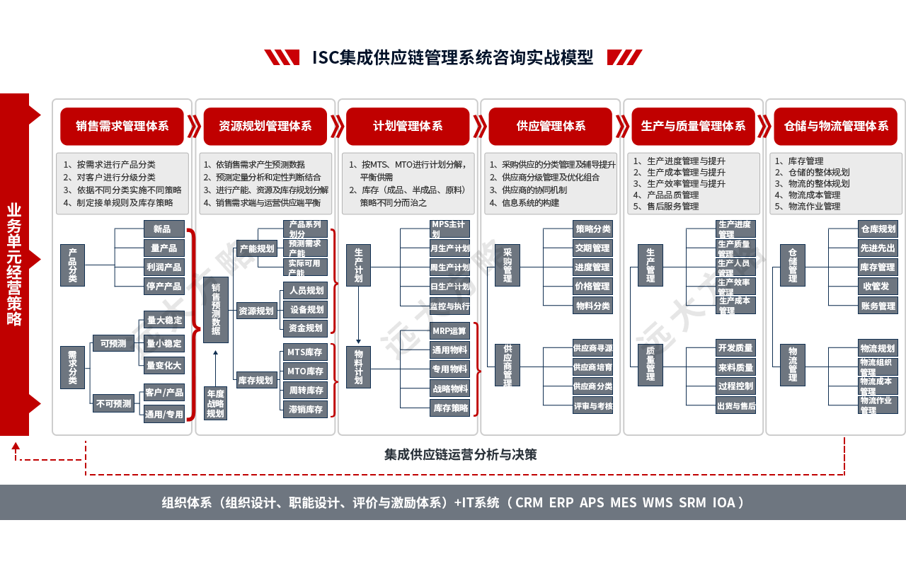 2、輔導(dǎo)模塊:推行ISC集成供應(yīng)鏈管理,主要圍繞產(chǎn)品運(yùn)營(yíng)管理、接單規(guī)則和庫(kù)存管理、銷售預(yù)測(cè)管理、S&OP管理、公司計(jì)劃模式優(yōu)化、物料管理體系等