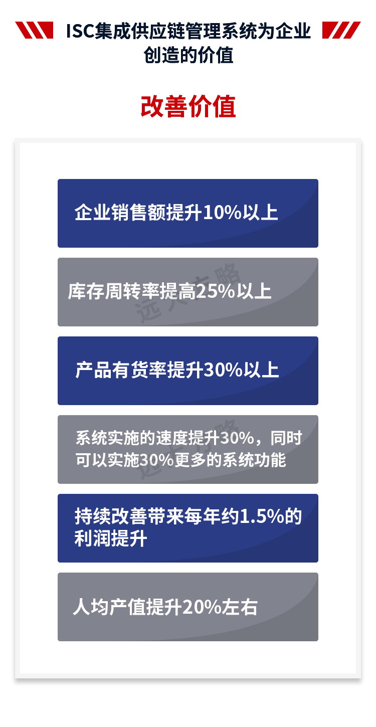 3、數(shù)據(jù)增長(zhǎng):打造高效供應(yīng)鏈咨詢項(xiàng)目,通過(guò)提高交付的可靠性與靈活性,提升客戶的滿意度;通過(guò)降低庫(kù)存、減少生產(chǎn)及分銷的費(fèi)用,降低公司成本;通過(guò)流程優(yōu)化、消弭異常事件,提升企業(yè)整理的流程品質(zhì)。實(shí)現(xiàn):人均產(chǎn)值提升22%,訂單交付及時(shí)率提升33%,供應(yīng)鏈周期縮短21%,庫(kù)存周轉(zhuǎn)速率提升23%,供應(yīng)鏈響應(yīng)速度提升32%。