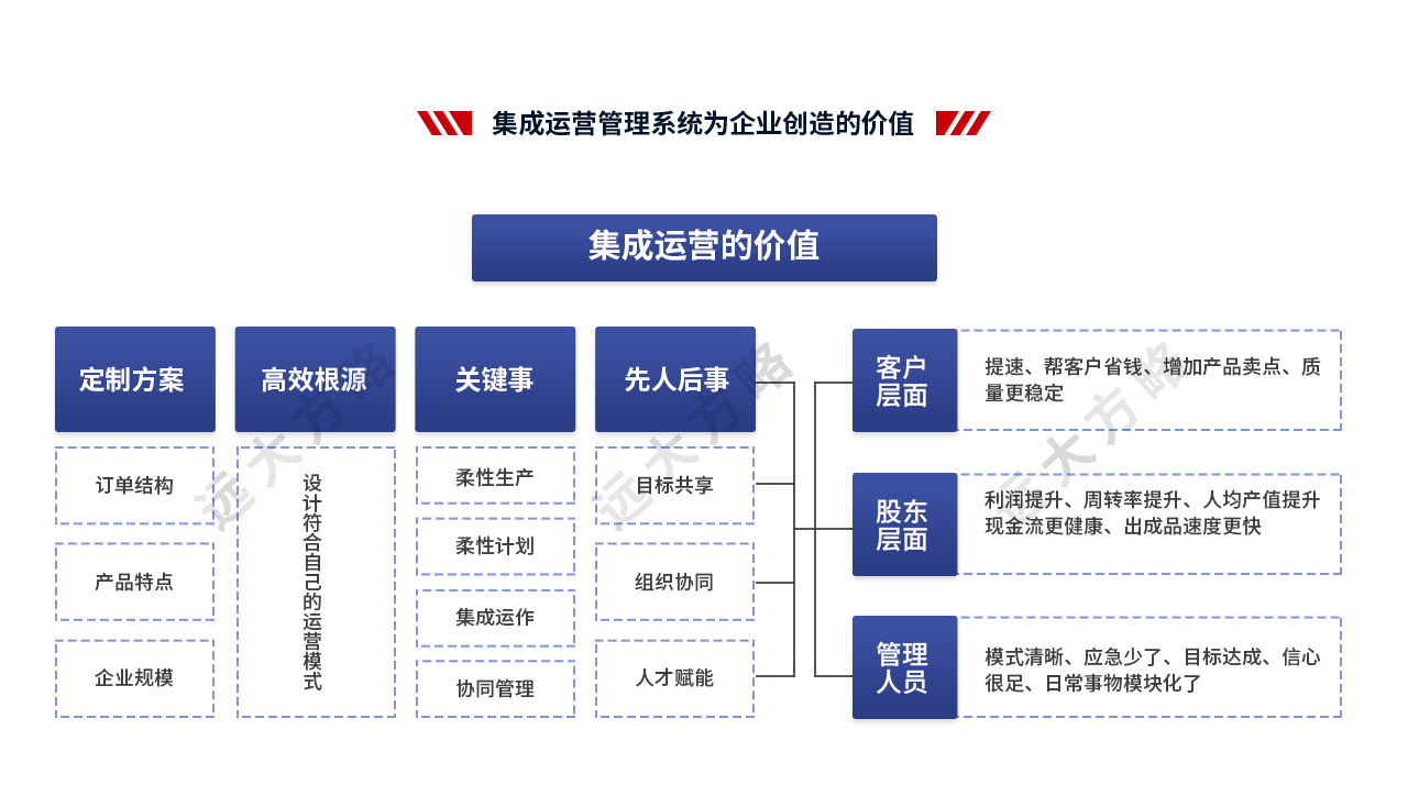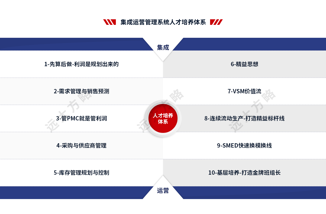 2、輔導(dǎo)模塊:推行卓越運(yùn)營(yíng)管理,主要圍繞經(jīng)營(yíng)管理中心建立、計(jì)劃信息鏈與組織運(yùn)作信息鏈構(gòu)建、精益生產(chǎn)模式優(yōu)化等