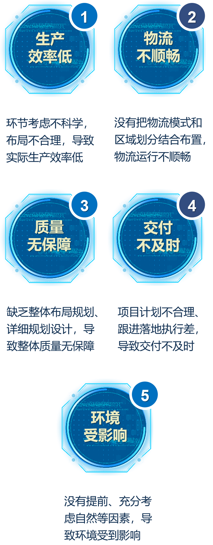 ①自制件全部整合規(guī)劃,消除園區(qū)間長距離搬運;②基本實現(xiàn)園區(qū)人車分流;③物流自動化。