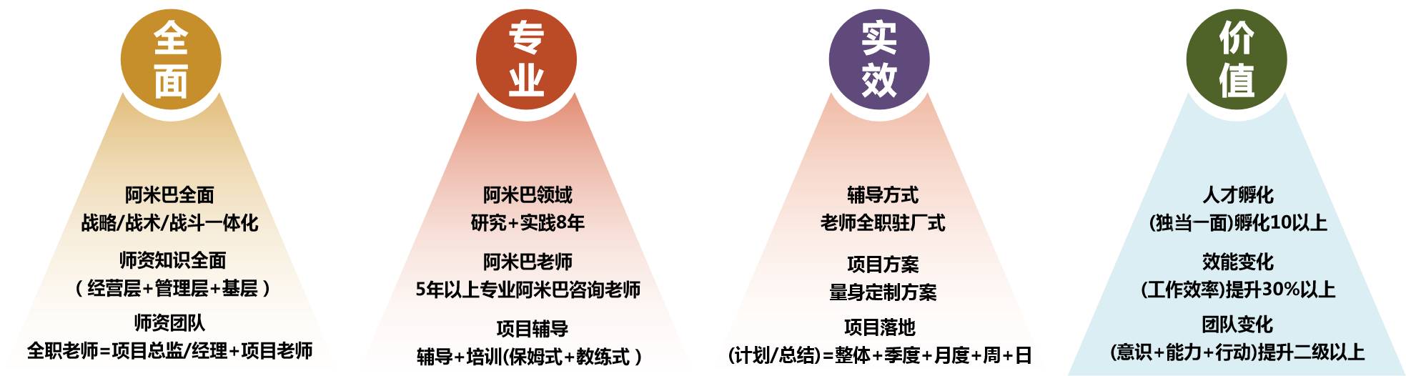 4、數(shù)據(jù)增長:(1) 公司高層、中層、基本價(jià)值觀高度統(tǒng)一;(2)公司企業(yè)文化清晰明確,提倡什么、禁止什么清楚明了;(3)組織架構(gòu)調(diào)整實(shí)施,責(zé)、權(quán)、利下放至各事業(yè)部;(4)事業(yè)部實(shí)現(xiàn)獨(dú)立財(cái)務(wù)核算;(5)事業(yè)部?jī)?nèi)各阿米巴實(shí)現(xiàn)獨(dú)立財(cái)務(wù)核算;(6) 人才培養(yǎng)機(jī)制初步形成;(7) 持續(xù)降低成本的自主運(yùn)營機(jī)制初步建立;(8)公司利潤率提升5%,凈利潤提升80%。